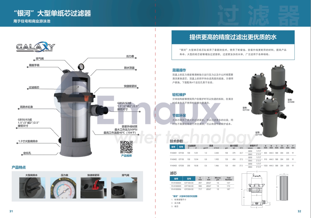 “銀河”大型單芯紙芯缸采用了最新的技術,使用了耐腐蝕、防紫外線更耐用的材料,提高產品壽命。大型的紙芯能夠增加過濾面積,過濾更加多的水體,廣泛適用于各種場地。
