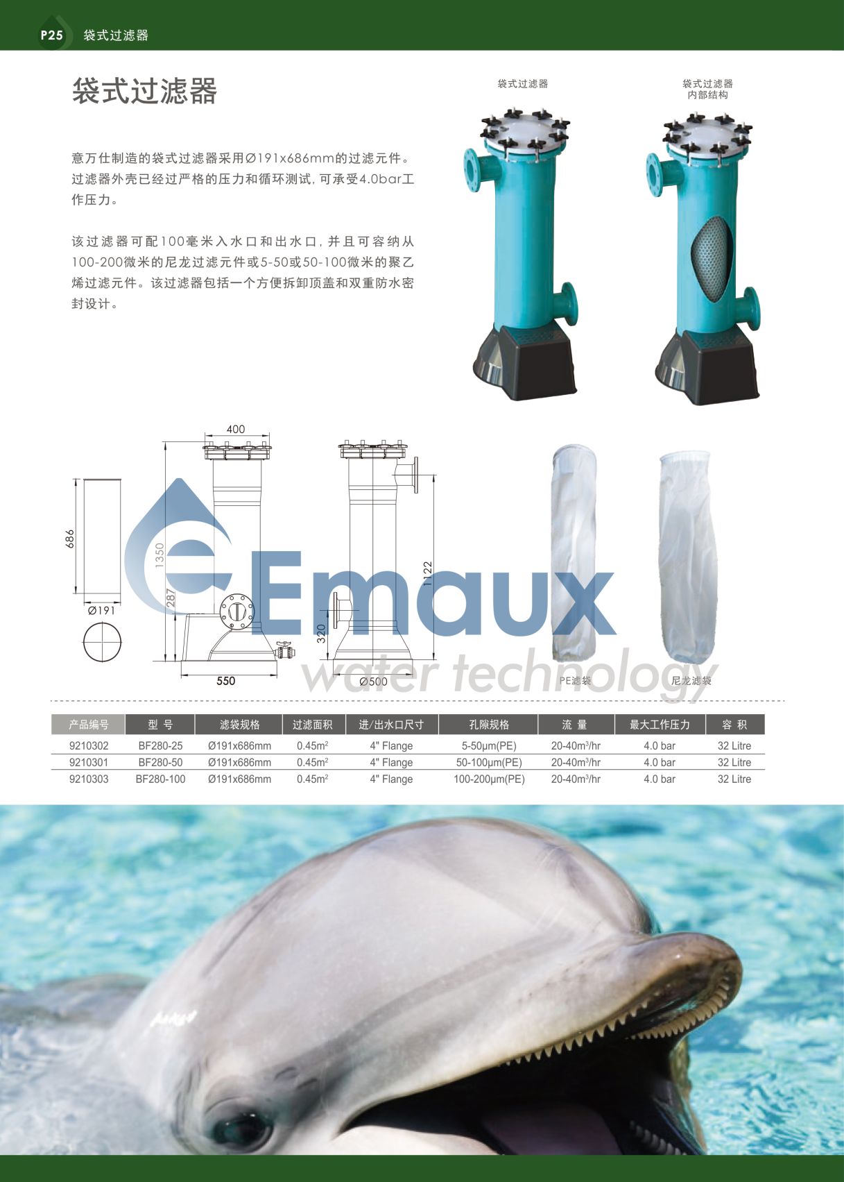 競(jìng)技池意萬仕制造的袋式過濾器采用0191x686mm的過濾元件。過濾器外殼已經(jīng)過嚴(yán)格的壓力和循環(huán)測(cè)試,可承受4.0bar工作壓力。 該過濾器可配100毫米入水口和出水口, 并且可容納從100-200微米的尼龍過濾元件或5-50或50-100微米的聚乙烯過濾元件。該過濾器包括一個(gè)方便拆卸頂蓋和雙重防水密封設(shè)計(jì)。