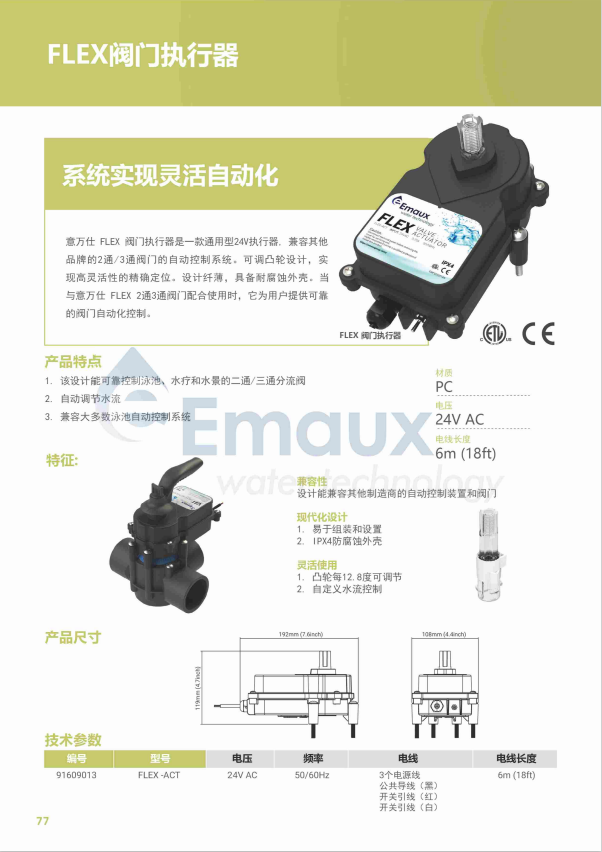 1. 該設計能可靠控制泳池、水療和水景的二通/三通分流閥