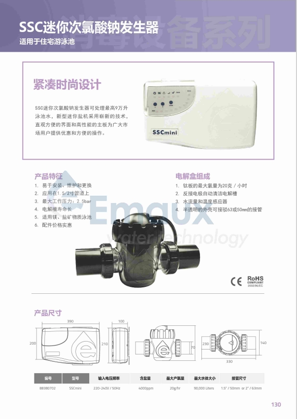 競技池SSC迷你次氯酸鈉發(fā)生器可處理最高9萬升泳池水,新型迷你鹽機采用嶄新的技術,直觀方便的界面和高性能的主板為廣大市場用戶提供優(yōu)惠和方便的操作。