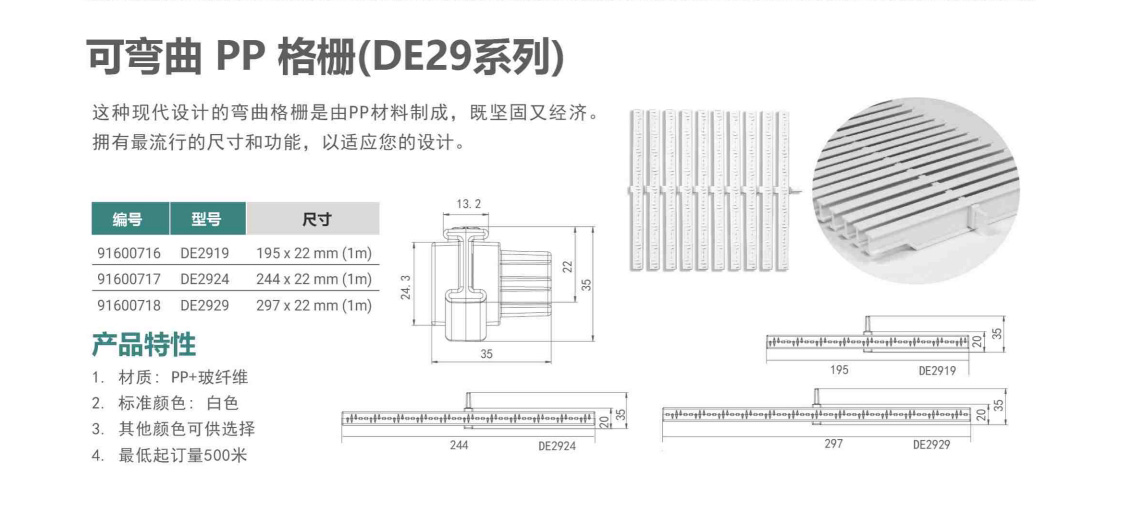 您的位置:首頁>產(chǎn)品概覽>泳池格柵>可彎曲 PP 格柵(DE29系列)