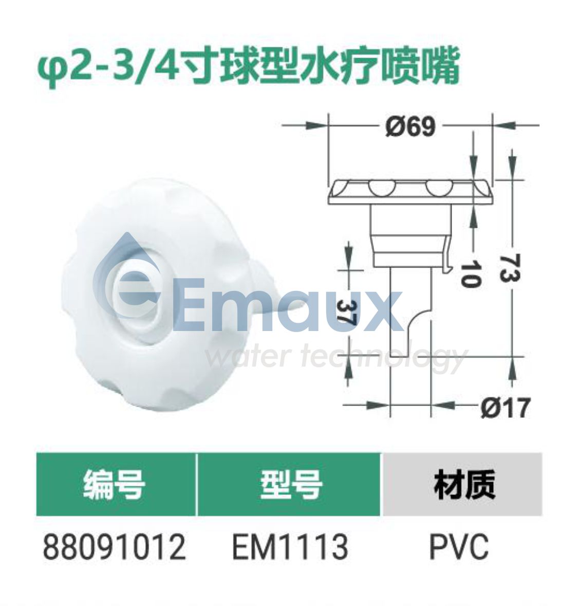 您的位置:首頁>產(chǎn)品概覽>SPA配件>φ2-3/4寸球型水療噴嘴