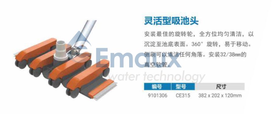 安裝最佳的旋轉輪,全方位均勻清潔,以沉淀至池底表面。360°旋轉,易于移動。側刷可以清潔任何角落。安裝32/38 mm 的真空軟管
